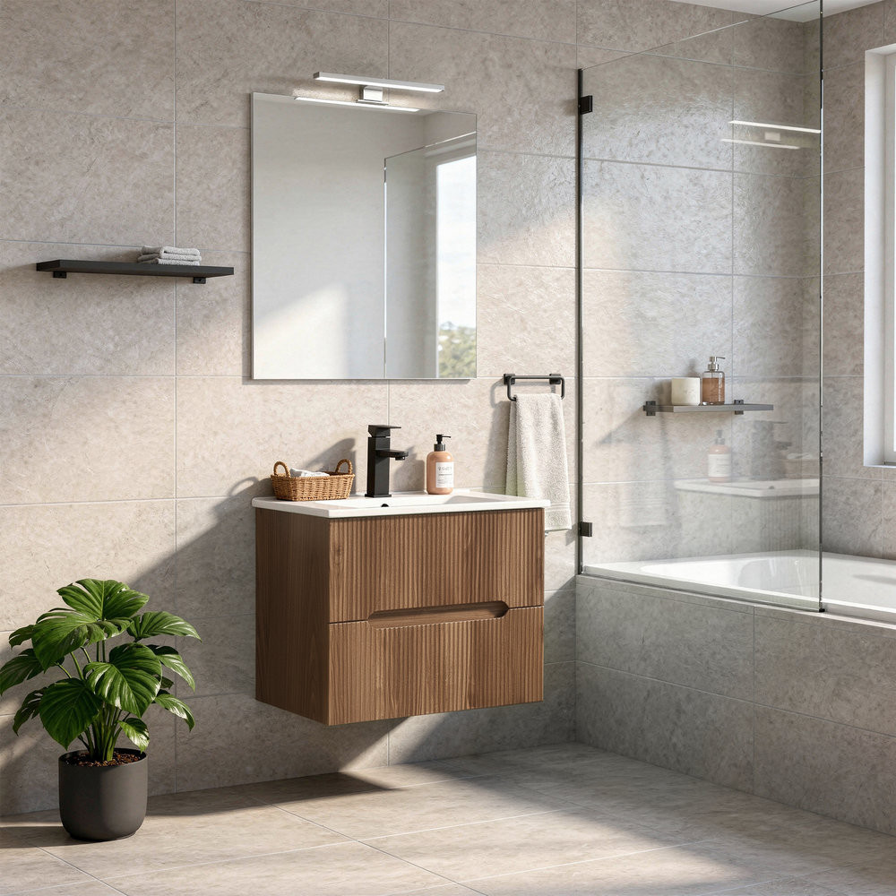 Praktikus és letisztult fürdőszobabútor tartós kerámia mosdóval