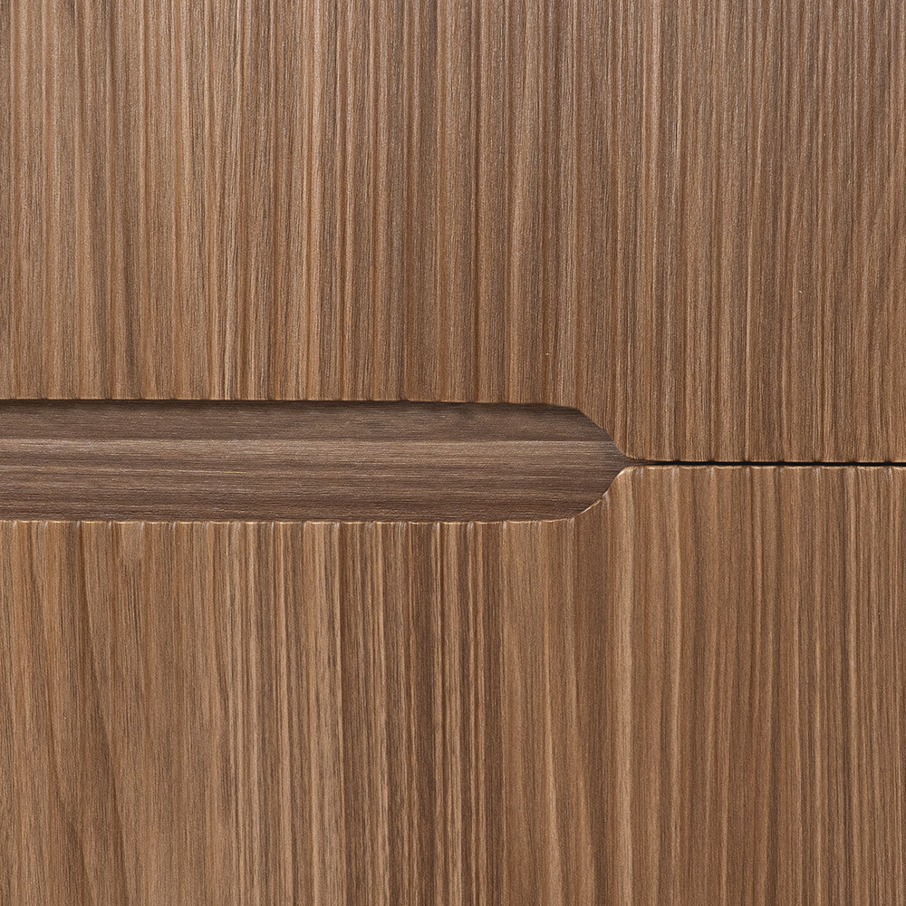 A fiók erős, teljes kihúzású sínrendszert kapott, soft-close záródással, a felső fiók U-alakú kivágása pedig a szifon elhelyezését teszi lehetővé anélkül, hogy jelentősen csökkentené a tárolókapacitást. A mosdó standard 35 mm-es csaptelepekkel kompatibilis. A bordázott front pedig lekerekített profillal készült, így egy mikroszálas kendővel könnyedén tisztán tartható.