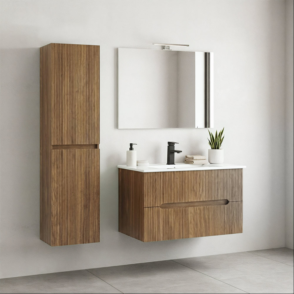 A Leziter Trent függesztett oldal szekrény letisztult, modern megjelenésével tökéletes kiegészítője bármely Trent fürdőszobabútornak – vagy önálló tárolóként is ideális választás. A bordázott frontok harmonikusan illeszkednek a minimalista és skandináv stílusú enteriőrökbe. Praktikus méreteinek köszönhetően kényelmes tárolóhelyet kínál anélkül, hogy értékes padlófelületet foglalna.