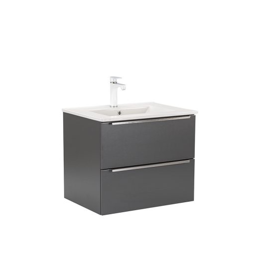 A Vario Trim 60 komplett fürdőszobabútor egy stílusos és praktikus választás modern fürdőszobához. Kompakt méretei ideálisak kisebb és közepes méretű fürdőszobákba is, és a fém fogantyú profil patinás hatást, az antracit-antracit színű dizájn elegáns megjelenést kölcsönöz a térnek. A csillapítós fiókzáródás és a felfüggesztett kivitel a kényelmet és könnyű tisztántartást szolgálja, míg a minőségi anyagok hosszú élettartamot biztosítanak.