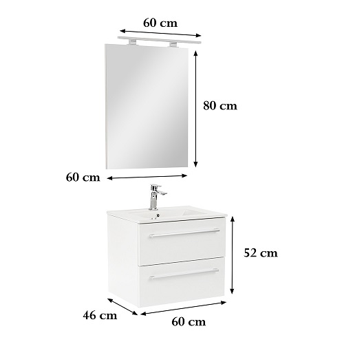 Vario Clam 60 komplett fürdőszoba bútor fehér-fehér - stílusos és modern fürdőszobabútor