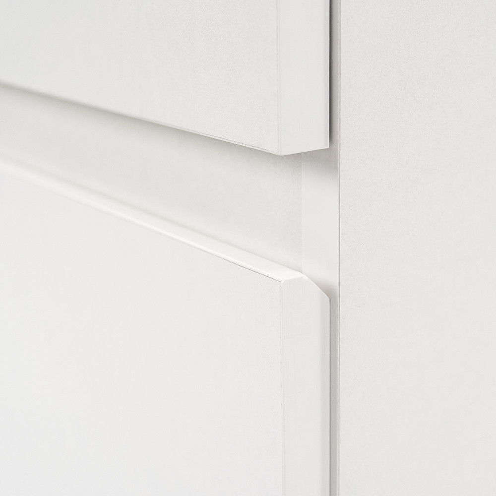 A fehér korpusz és a fehér front kombinációja elegáns és időtálló megjelenést kölcsönöz a bútornak.