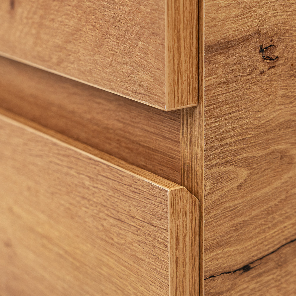 Az tölgy korpusz és a tölgy front kombinációja elegáns és időtálló megjelenést kölcsönöz a bútornak.