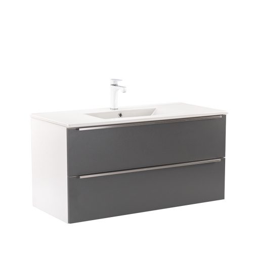 A Vario Trim 100 komplett fürdőszobabútor egy stílusos és praktikus választás modern fürdőszobához. Kompakt méretei ideálisak kisebb és közepes méretű fürdőszobákba is, és a fém fogantyú profil patinás hatást, az fehér-antracit színű dizájn elegáns megjelenést kölcsönöz a térnek. A csillapítós fiókzáródás és a felfüggesztett kivitel a kényelmet és könnyű tisztántartást szolgálja, míg a minőségi anyagok hosszú élettartamot biztosítanak.