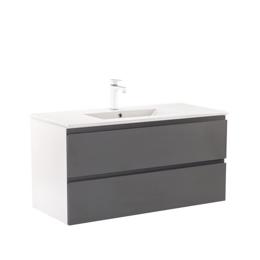 A Vario Pull 100 alsó szekrény mosdóval egy stílusos és praktikus választás modern fürdőszobához. Kompakt méretei ideálisak kisebb és közepes méretű fürdőszobákba is, és a J-profilú, fehér-antracit színű dizájn elegáns megjelenést kölcsönöz a térnek. A csillapítós fiókzáródás és a felfüggesztett kivitel a kényelmet és könnyű tisztántartást szolgálja, míg a minőségi anyagok hosszú élettartamot biztosítanak.
