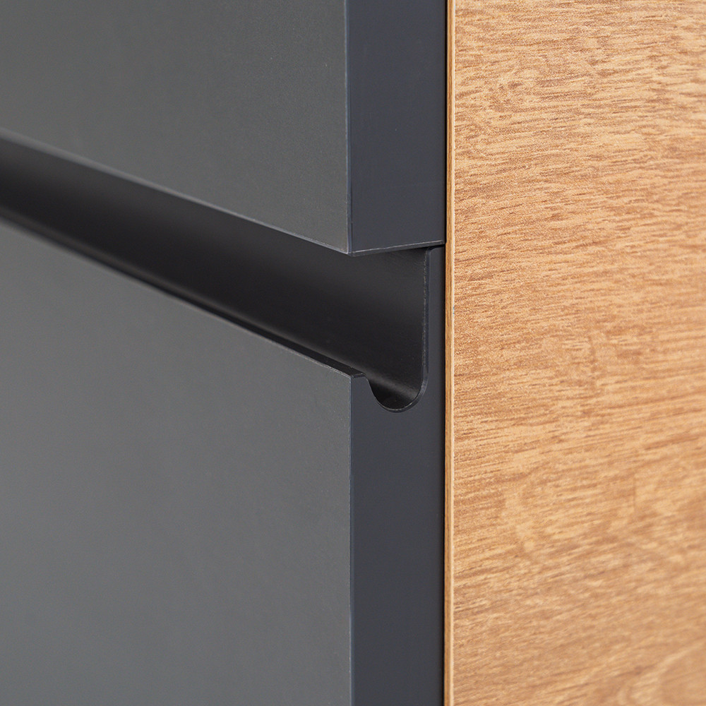 • Kifinomult színvilág: A tölgy korpusz és az antracit front kombinációja elegáns és időtálló megjelenést kölcsönöz a bútornak.