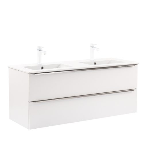 • Elegáns és praktikus mosdó: A bútor flat design kerámia mosdóval érkezik, amely kétmedencés kivitelű. Modern, esztétikus és könnyen tisztítható.