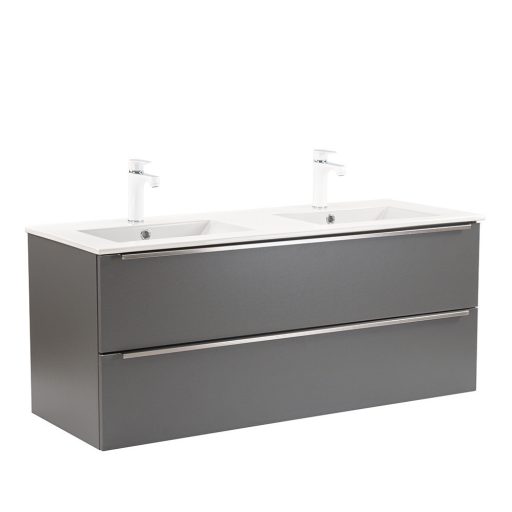 - Elegáns és praktikus mosdó: A bútor flat design kerámia mosdóval érkezik, amely kétmedencés kivitelű. Modern, esztétikus és könnyen tisztítható.