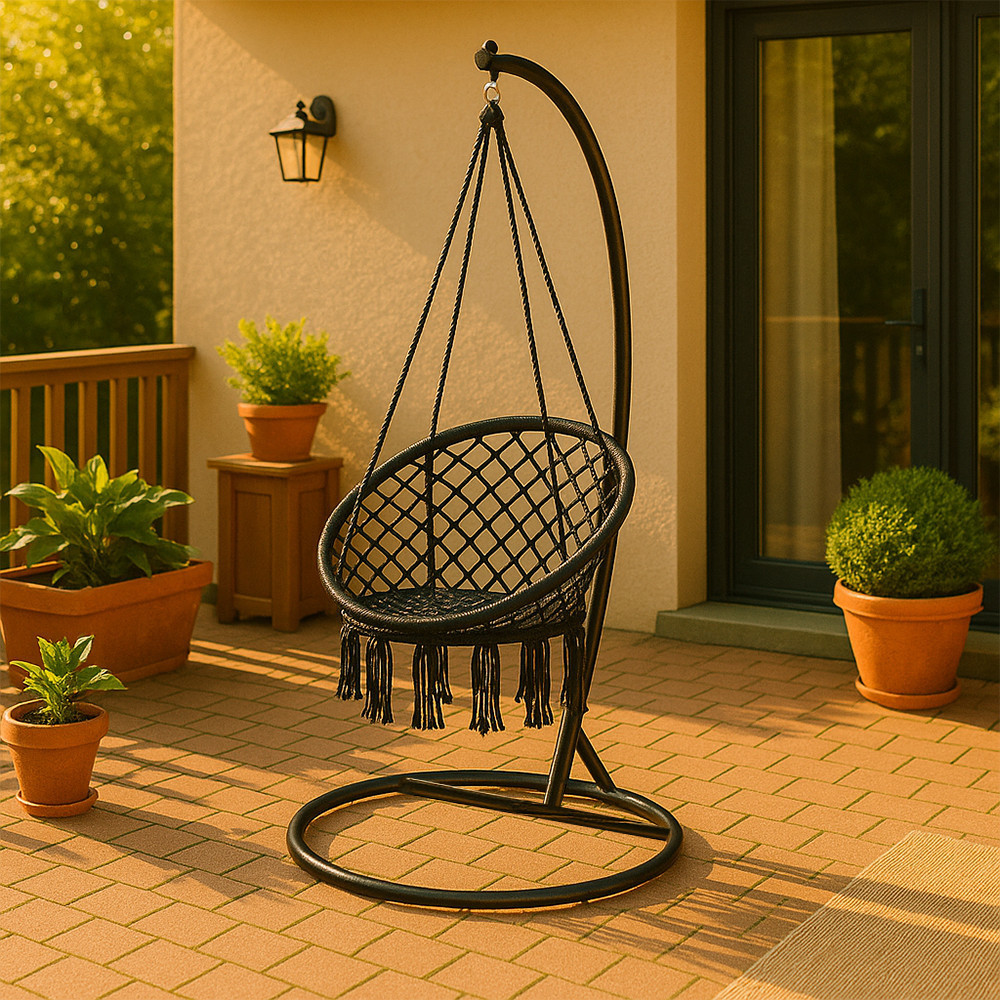 Fekete függőfotel állvány – stabilitás és szabadság, bárhol
