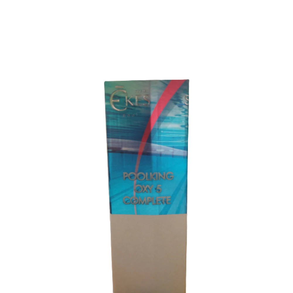 A POOLKING OXY 5 COMPLETE egy kombinált, két komponensből álló, 5 hatóanyagot tartalmazó klórmentes, aktív-oxigénes vegyszer. Alkalmas a pezsgőkád- vagy uszodavízben lévő szerves anyagok eltávolítására. Rendszeres használata kristálytiszta vizet eredményez.