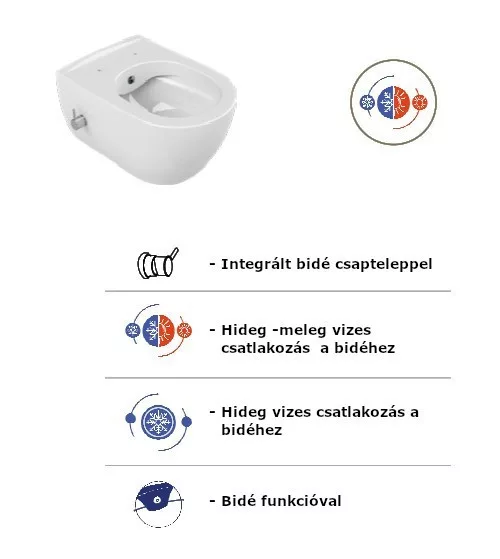 - Beépített bidé funkció: A csészébe integrált fúvóka (úgynevezett taharet funkció) frissítő és higiénikus megoldást nyújt.