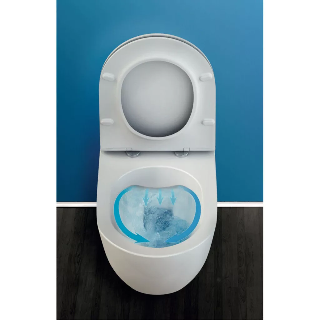Speciálisan tervezett vízelosztó rendszerének köszönhetően akár már 2,5-4l víz elegendő az öblítéshez. Perem néküli kialakítása könnyen ápolható felületet képez, így a baktériumok is kevésbé képesek elszaporodni a csészében.