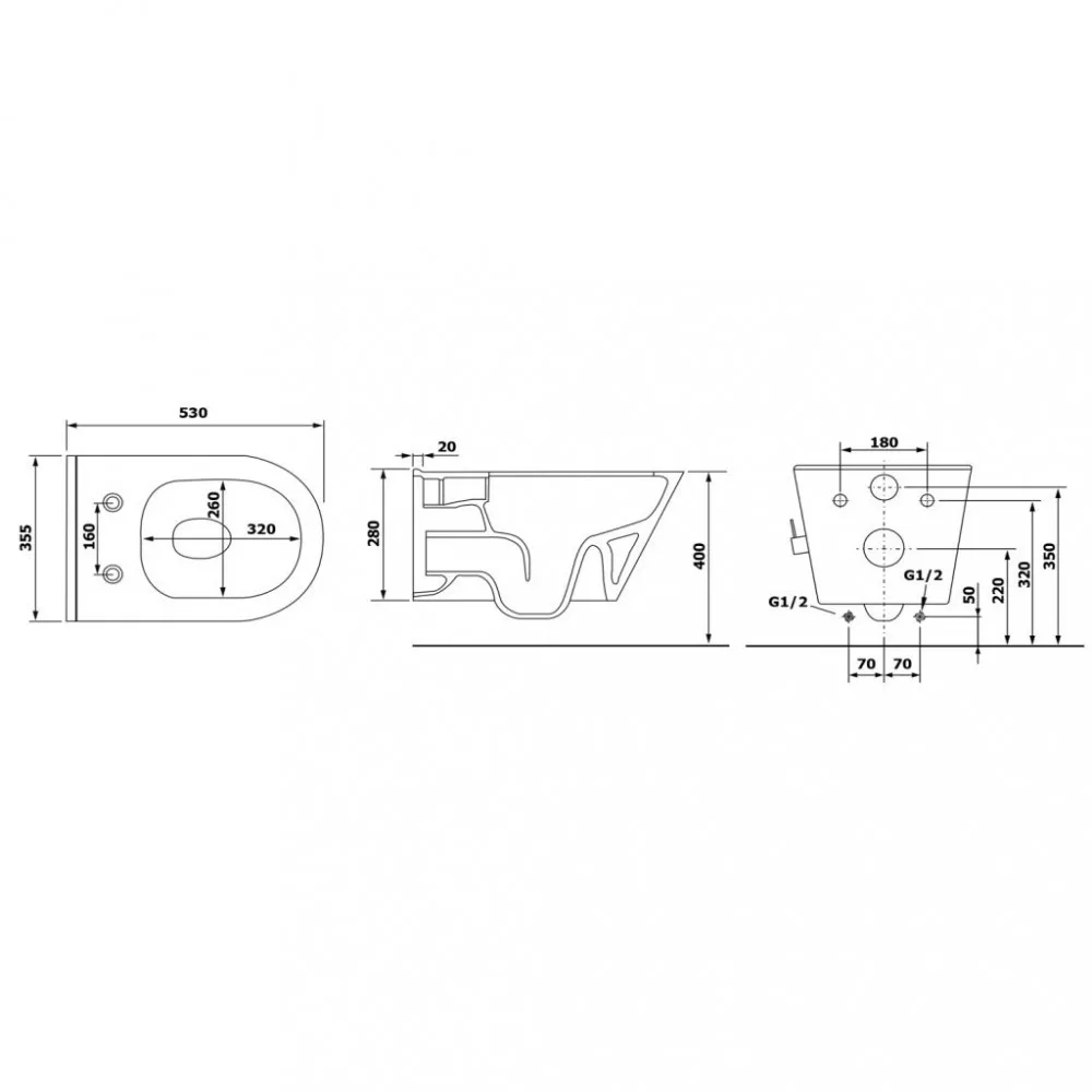Sanovit AVVA fali WC - BEÉPÍTETT bidé funkcióval - rimless - perem nélküli - 53 cm