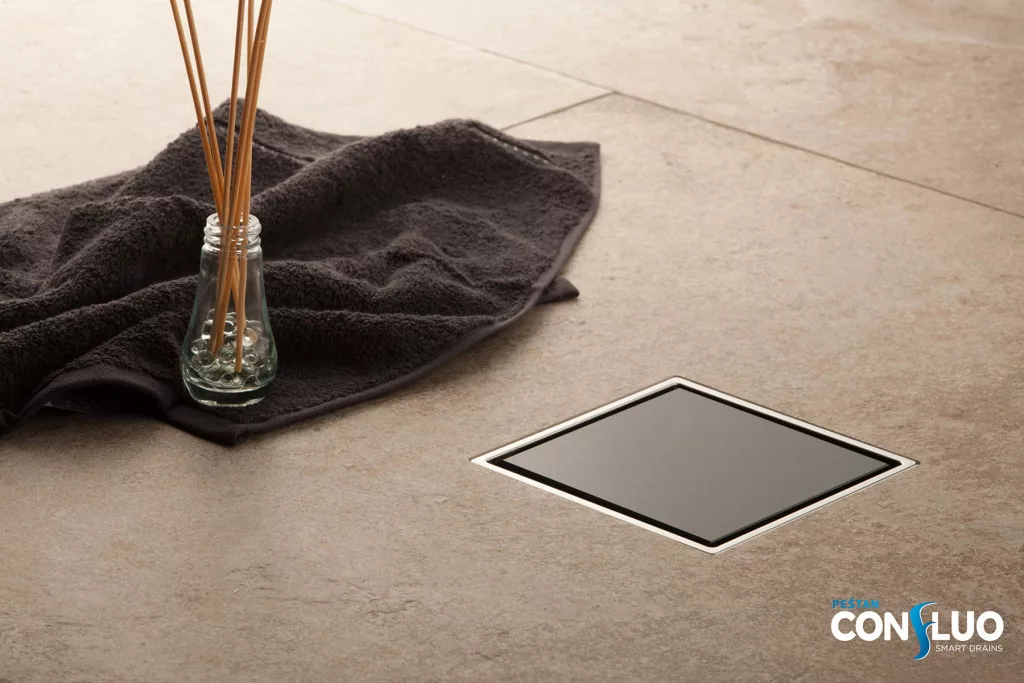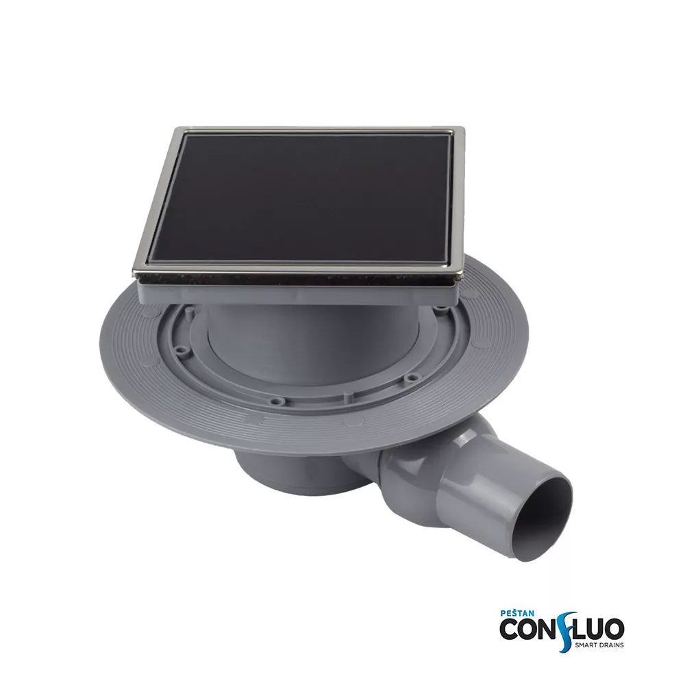 Pestan zuhanyfolyóka Confluo Standard - FEKETE üveg - 10 x 10 cm