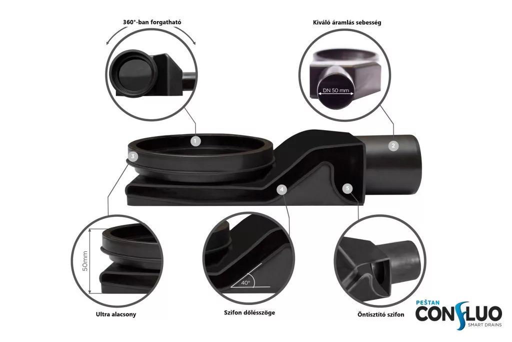 A Confluo Slim Line egy egyenes zuhanyfolyóka modell egyedi és minimalista rács design-al. A “Slim” alapja egy magas minőségű műanyagból készült test és a rozsdamentes acél rács, melyeket különféle méretekben szállítunk + komplett tartozék szett a vízszigeteléshez. Nagy előnye ennek a modellnek, hogy a kerámiával egy szintbe állítható és az innovatív ultra vékony rács.