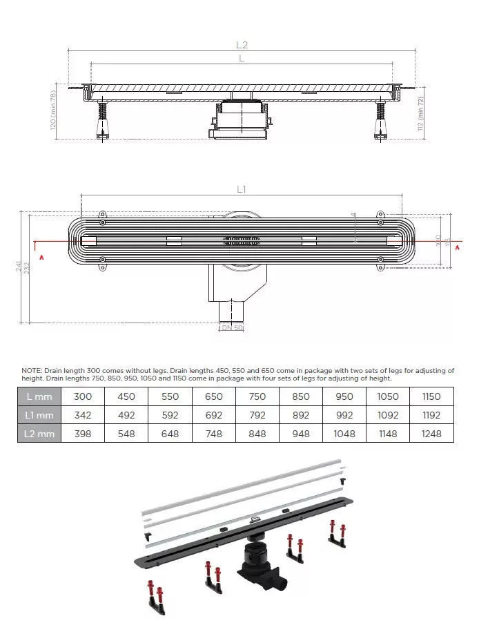 *ALS rendszer a Frameless Line, Slim Line és a Wall Drain modellek speciális tulajdonsága amely lehetővé teszi, hogy a csempék alól szivárgó vagy kondenzációs víz a lefolyóba kerüljön.