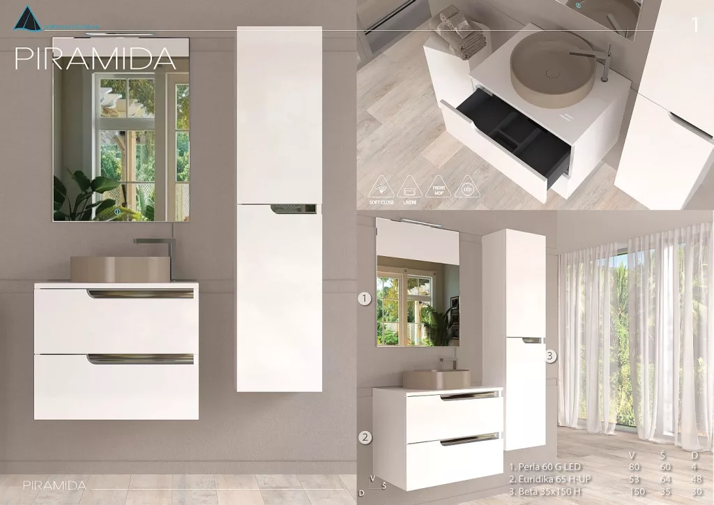 Piramida EURIDIKA fali fürdőszobabútor - mosdópult mosdó nélkül -2 fiókos - 65 x 48 x 53 cm