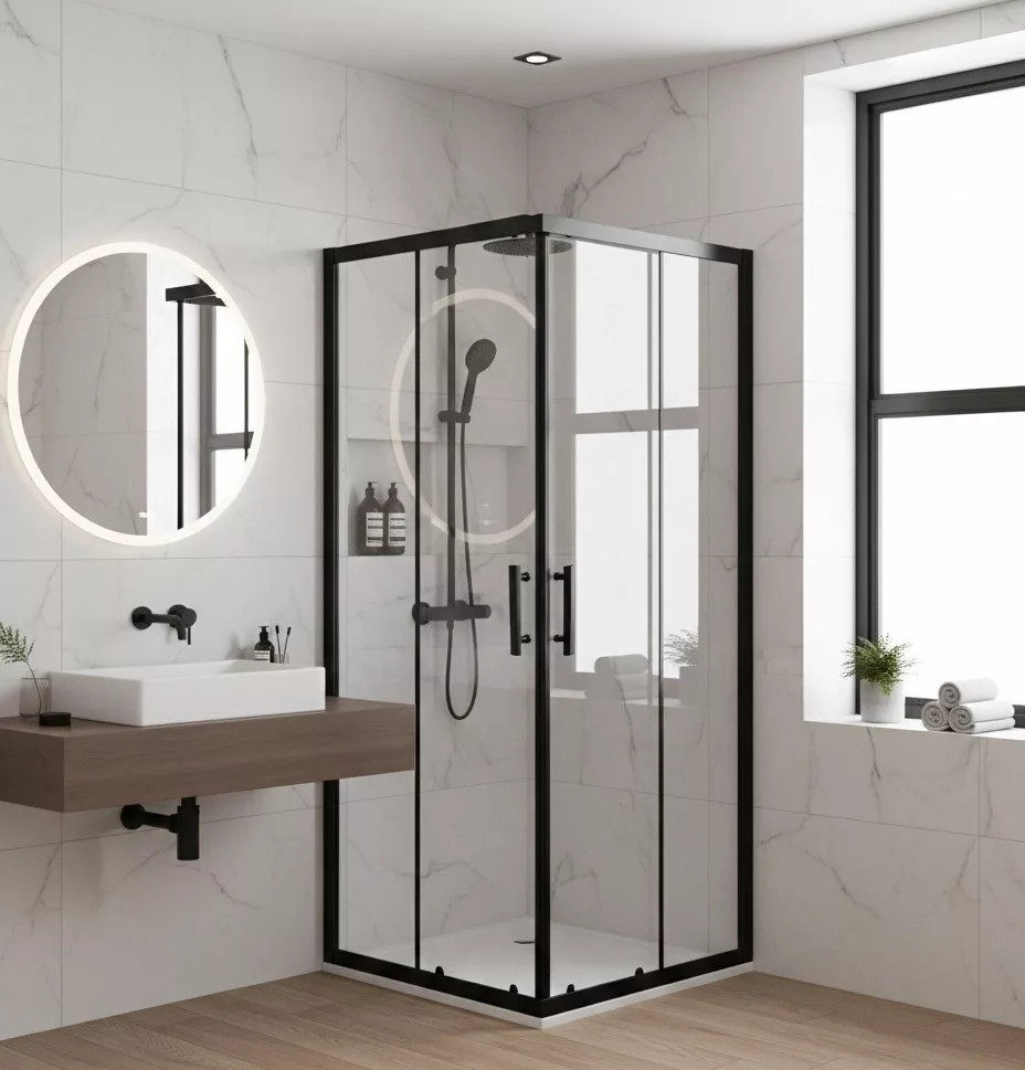 Viva AQUA Zuhanykabin SZÖGLETES FEKETE Profil - 6 mm víztiszta vízlepergető üveg - 80 x 80 x 190 cm