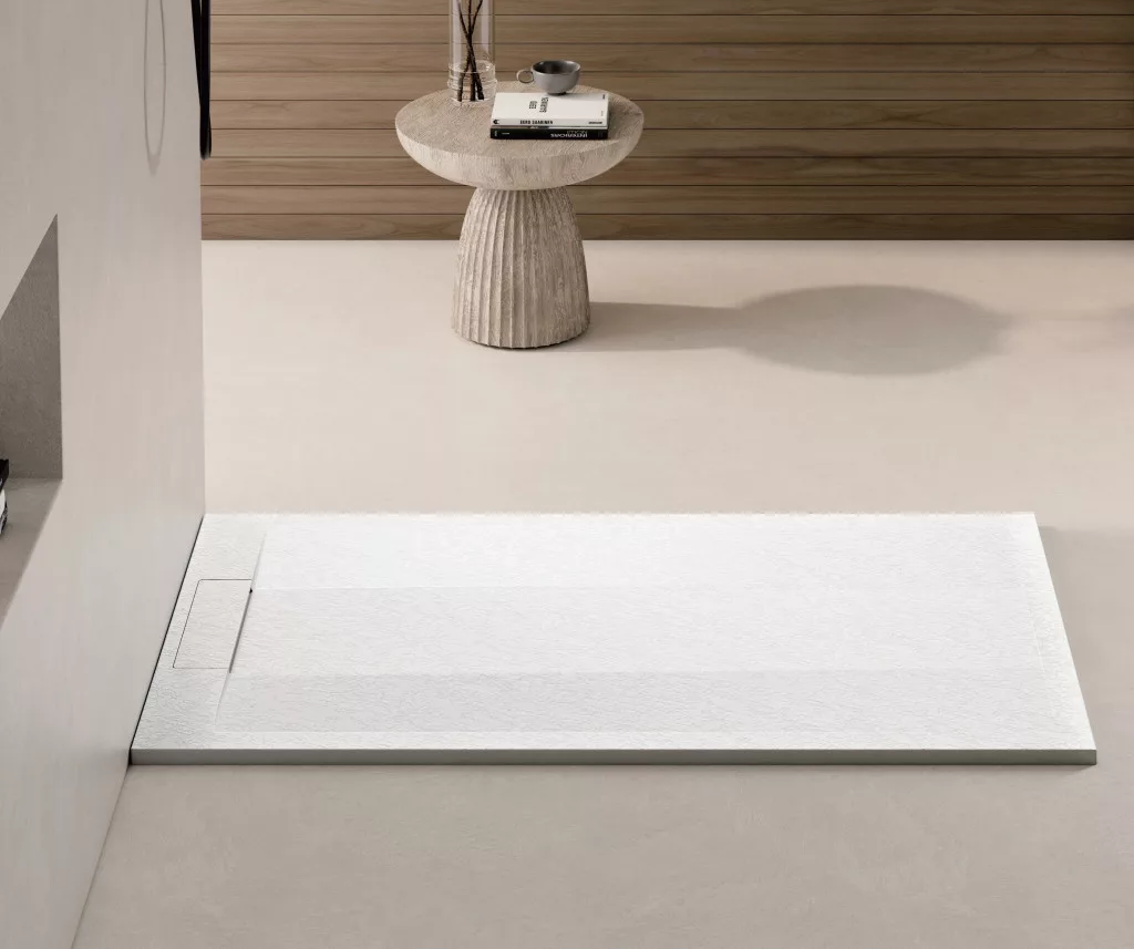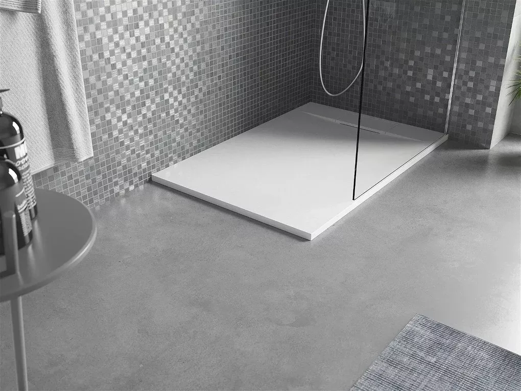 A 3 cm vastag, ultra-lapos kialakítás lehetővé teszi a modern, padlószintbe süllyesztett vagy hagyományos telepítést is. A felület magas hő- és ütésállósága, valamint antibakteriális tulajdonságai különösen alkalmassá teszik intenzív használatra. A matt fehér szín harmonikusan illeszkedik bármilyen fürdőszobai enteriőrhöz, letisztult, elegáns összhatást teremtve.