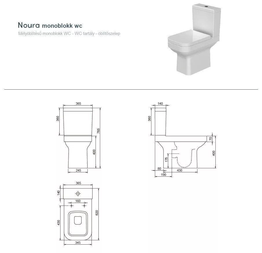 A CeraStyle NOURA mély öblítésű monoblokkos WC ideális választás minden modern fürdőszobába. Letisztult formatervezésének és kiváló minőségű kerámiából készült felületének köszönhetően tökéletesen illeszkedik a mai trendekhez. A mély öblítés hatékonyabb szennyvíz-eltávolítást biztosít, ezáltal higiénikusabb és víztakarékosabb működést tesz lehetővé.