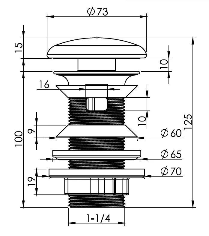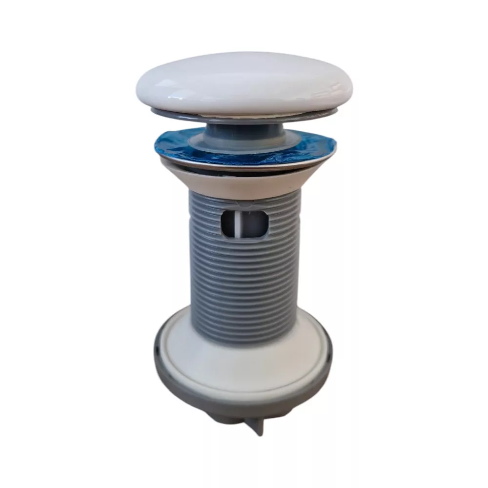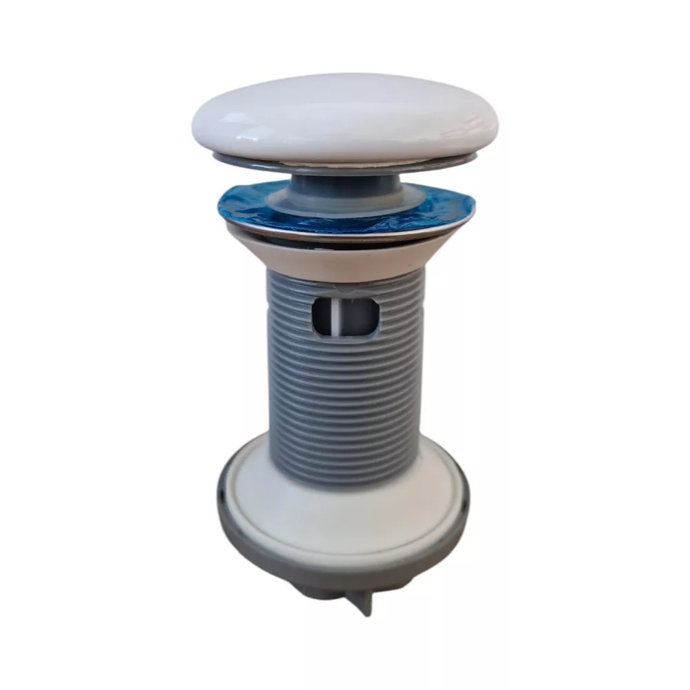 Klikk - klakk leeresztő - FÉNYES FEHÉR - porcelán - túlfolyós mosdókagylóhoz - 5/4" - Ø 73 mm