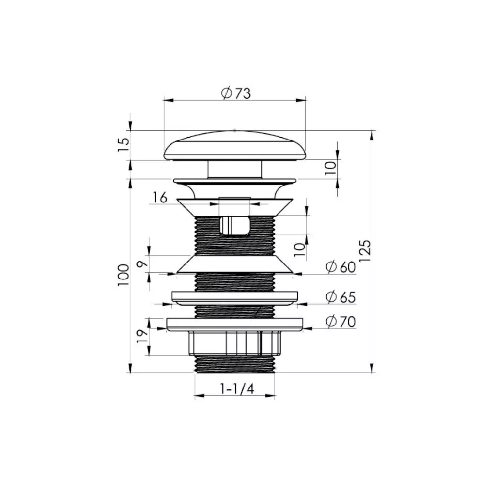 Klikk - klakk leeresztő - MATT FEHÉR - porcelán - túlfolyós mosdókagylóhoz - 5/4" - Ø 73 mm