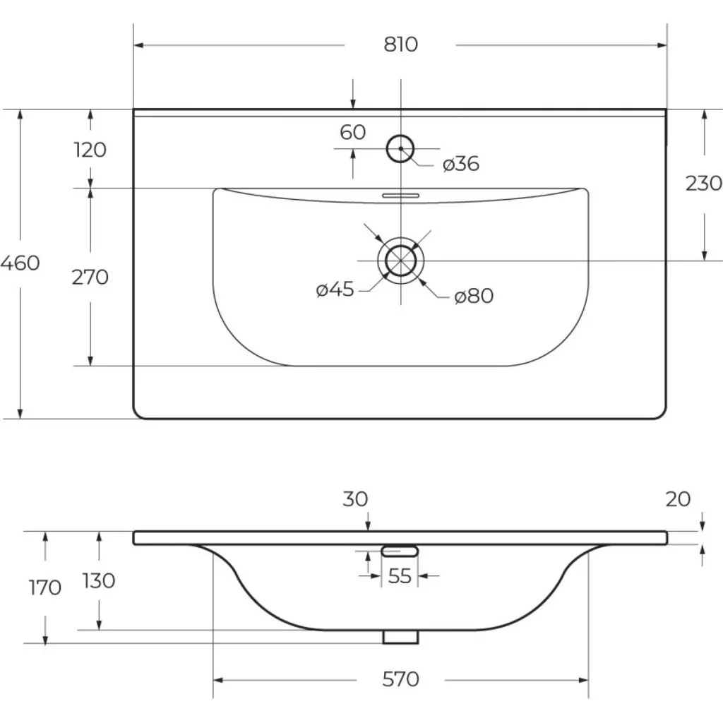Az Eros SKY 1 beépíthető mosdó ideális választás azok számára, akik letisztult eleganciát és maximális helykihasználást szeretnének elérni a fürdőszobában. Ez a 81 x 46 cm-es méret tökéletes kompromisszumot kínál a kényelem és a funkcionalitás között, a mosdótál kisebb magasságú, így akár 40 cm-es magasságú mosdószekrényekhez is alkalmas.