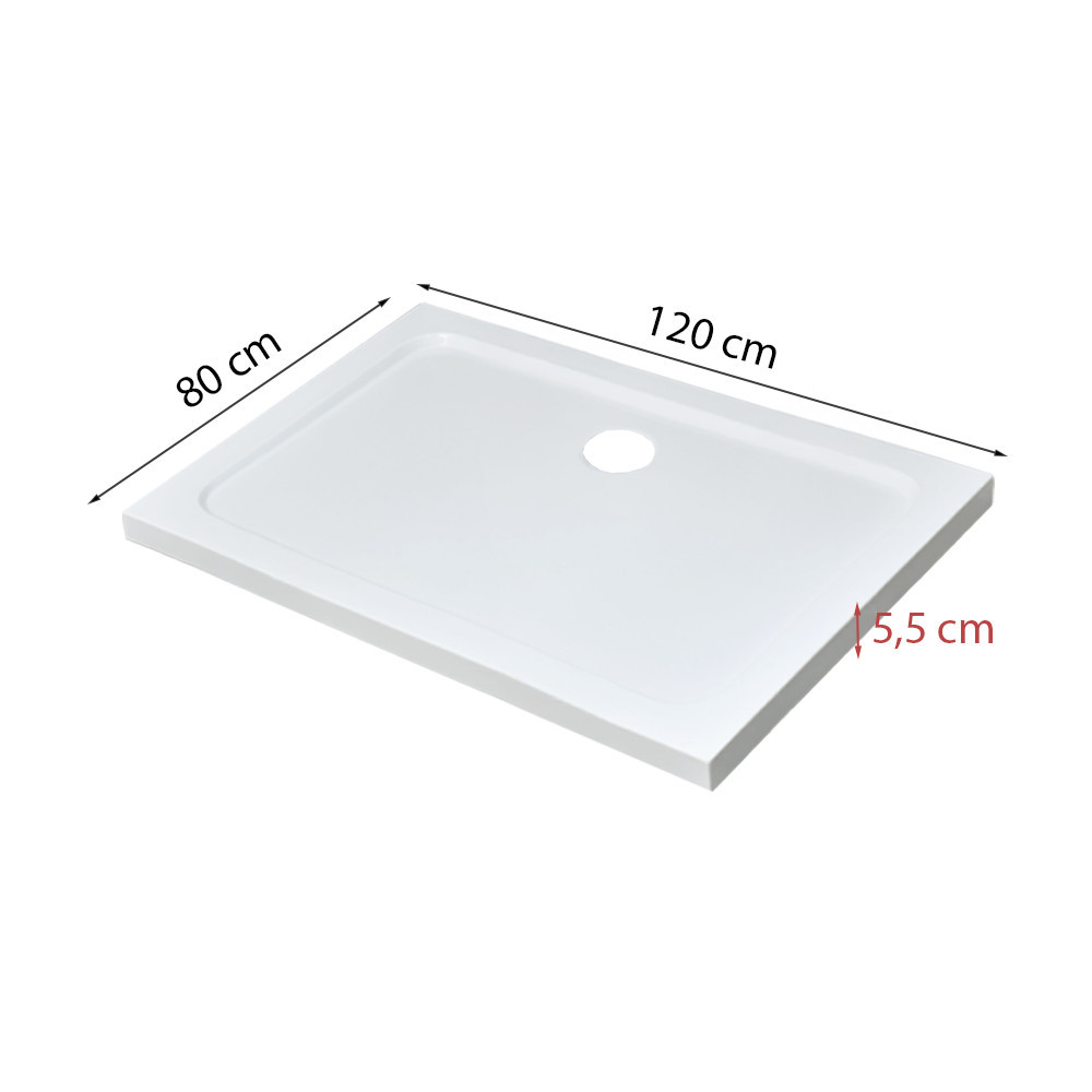 Modena Slim aszimmetrikus szögletes akril zuhanytálca, 80x120x5,5 cm-es méretben