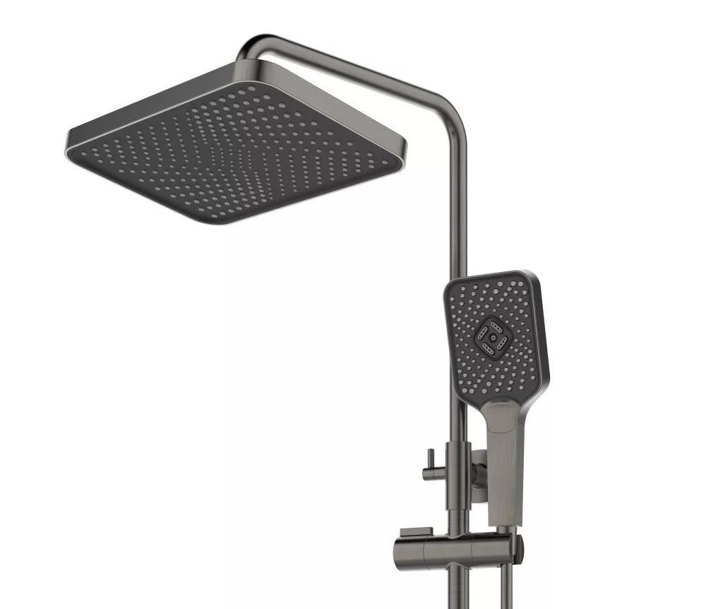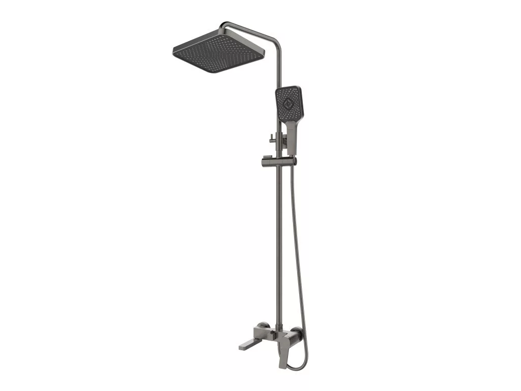 Caldo Freddo Zuhanyrendszer szögletes - króm - fejzuhany, zuhanyfej, gégecső - csapteleppel - GUN METAL (SZÜRKE)