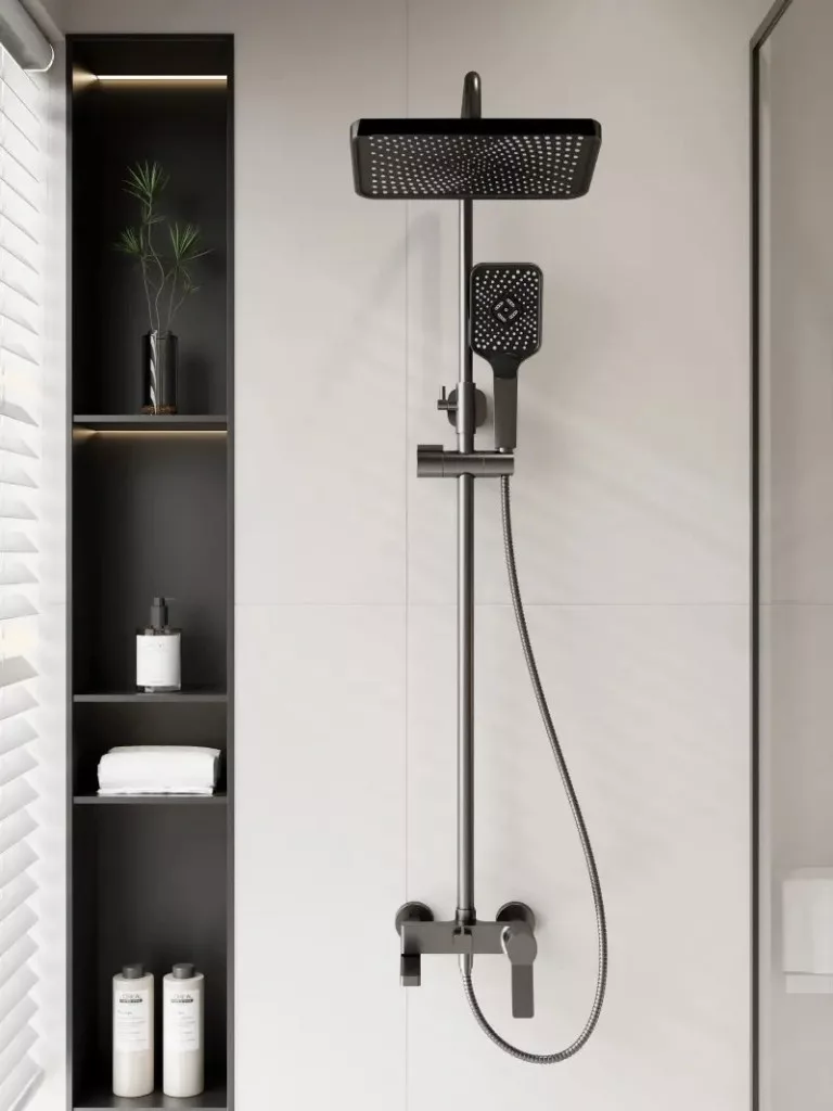 A rendszer tartalmazza a fejzuhanyt, kézi zuhanyfejet, rugalmas gégecsövet és csaptelepet, így nincs szükség külön kiegészítőkre.