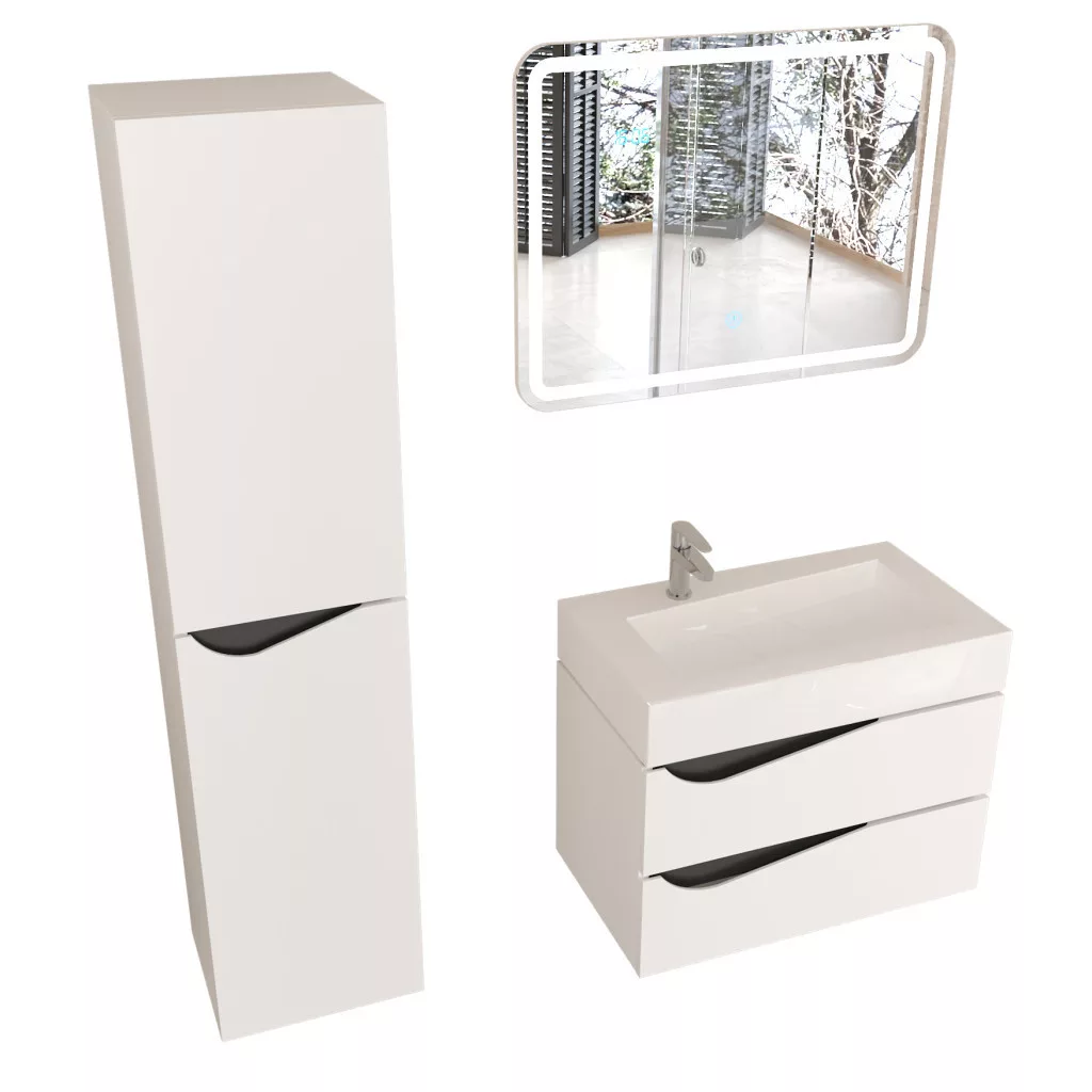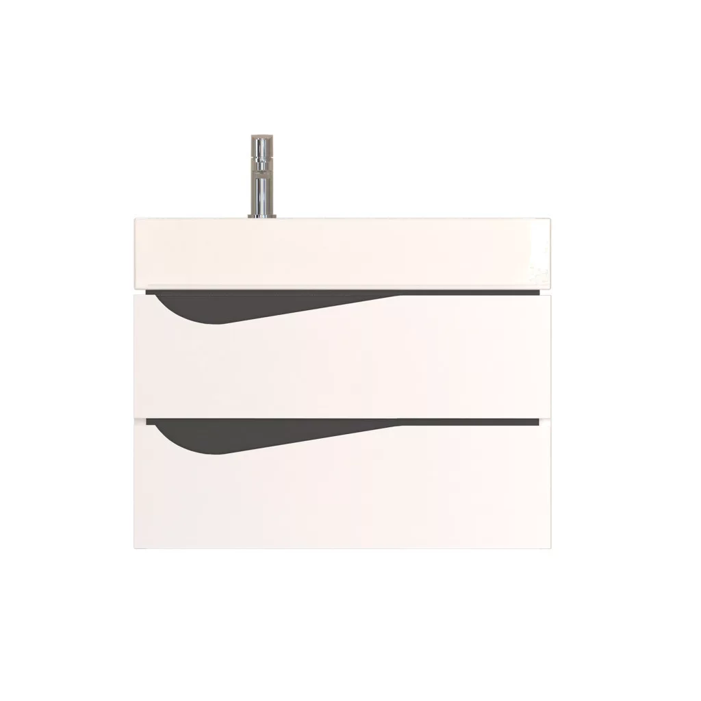 Piramida EURIDIKA fali fürdőszobabútor - műmárvány mosdóval -2 fiókos - ALPINFEHÉR-FEKETE - 70 x 41 x 56 cm