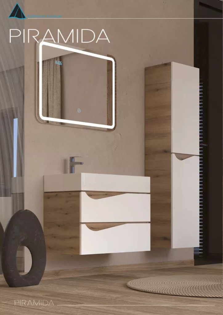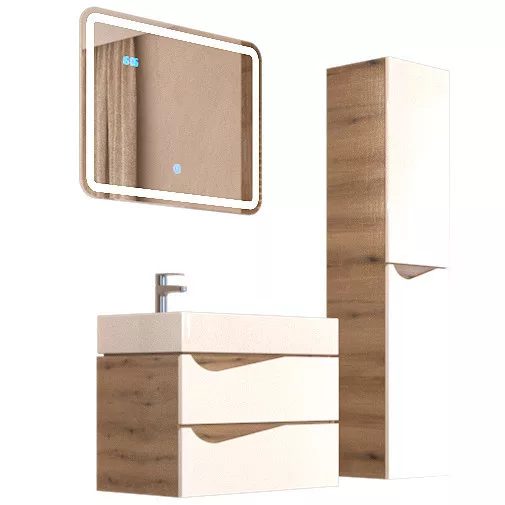 Piramida EURIDIKA fali fürdőszobabútor - műmárvány mosdóval -2 fiókos - ALPINFEHÉR-TÖLGY - 70 x 41 x 56 cm
